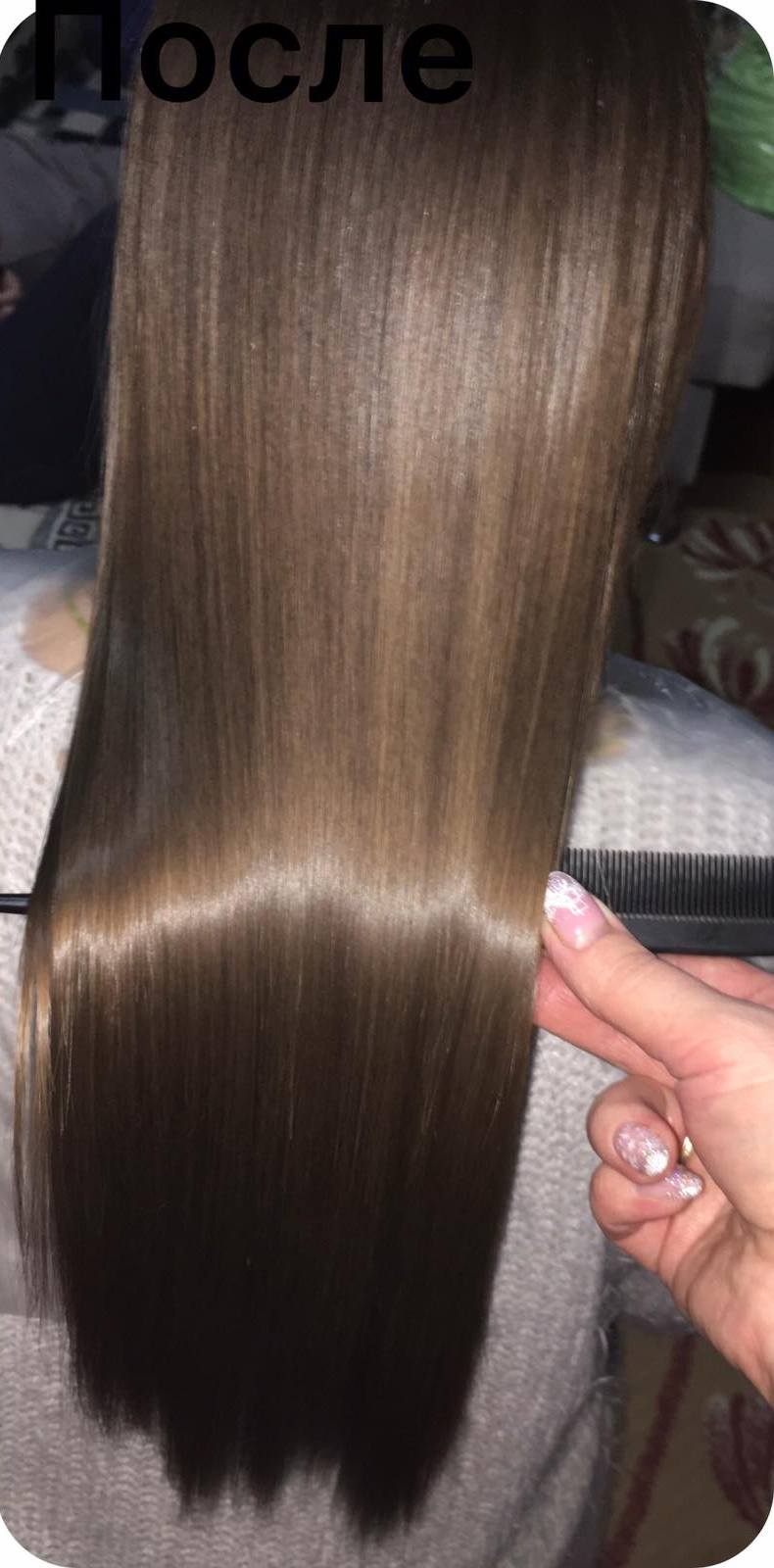 Спасибо Светлана волосы сейчас укладываются гораздо быстрее.Волосы прямые, ровные, гладкие, и шелковистые и очень блестят.После попадания под дождь они остались прямыми и гладкими.Утюжок больше не нужен, а главное что волосы как шелк.Мне очень понравилось ? когда выполнялась процедура ,не каких едких запахов не ощущалось,это большой плюс .Всем рекомендую попробовать сделать эту процедуру на свои волосы