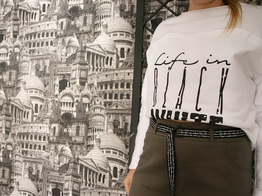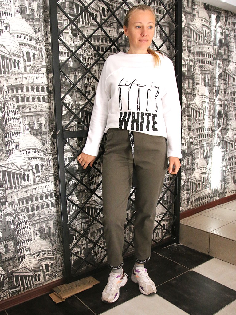 Анна выбрала стильный свитшот, стоимость которого 39 руб., и брюки с модным пояском, стоимость 40 руб.