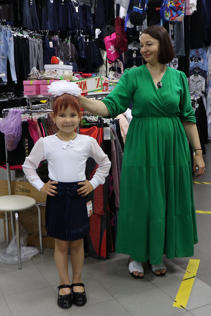 К примеру, ганцевчанка Оксана Рылко пришла в магазин с троими детьми и они подбирали обновки для двоих сыновей-школьников, а пятилетняя дочурка Сафия примерила наряд для первоклассницы.