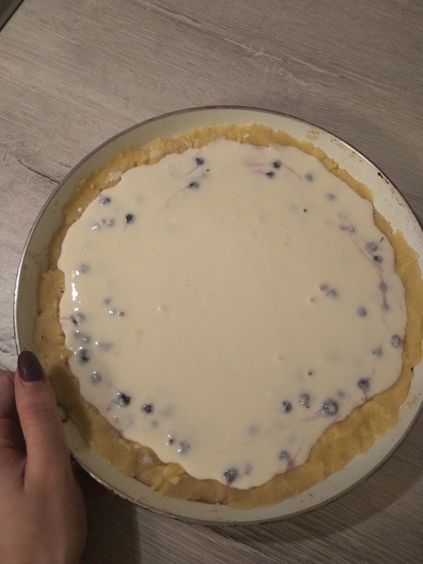 Пирог с черникой и сметанной заливкой