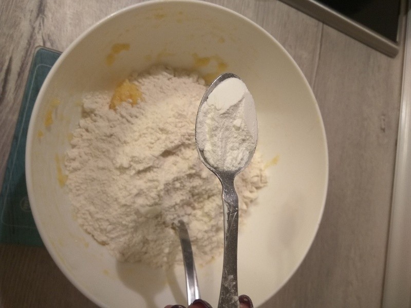 Затем муку и разрыхлитель.