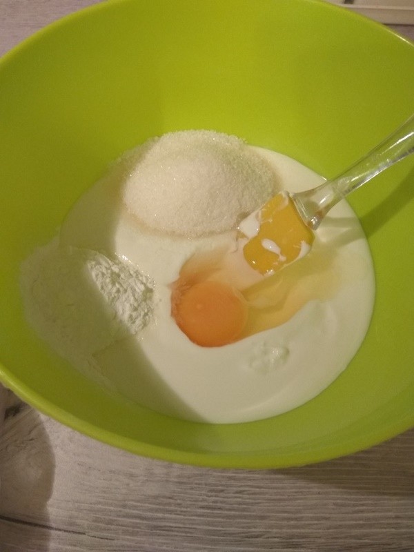 Соединить сметану, сахар, крахмал и яйцо.