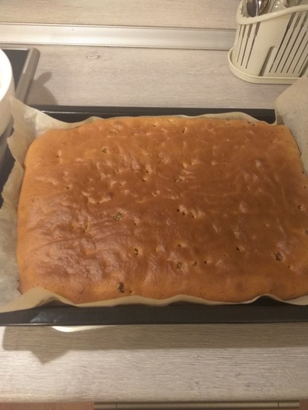 Остужаем готовый бисквит.