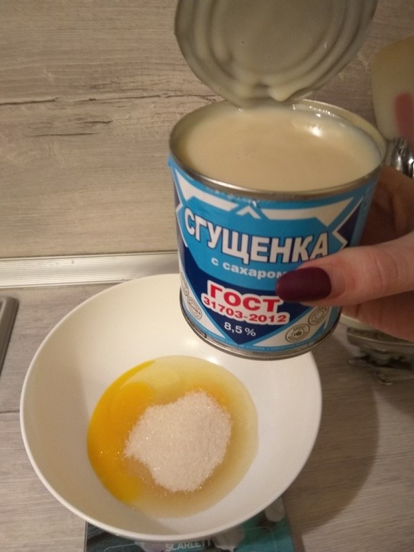 Добавляем сгущенку, тщательно перемешиваем.