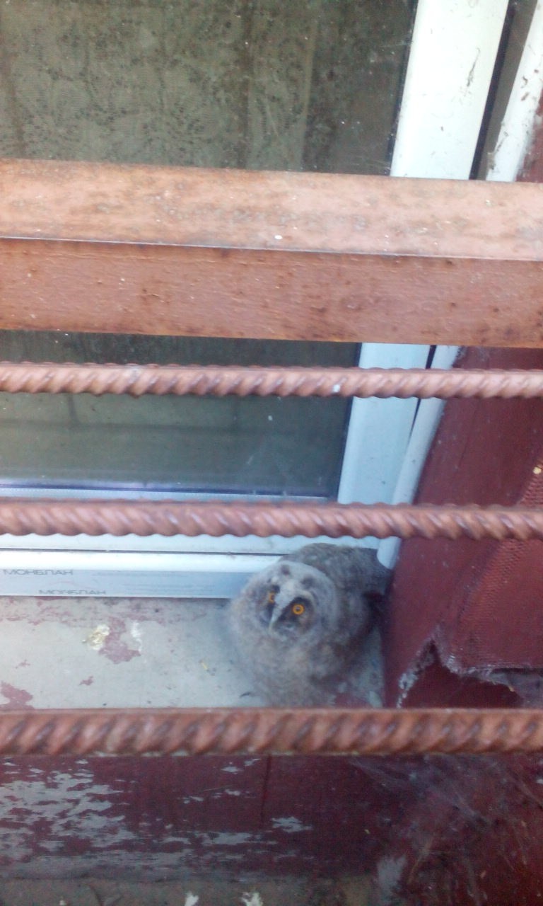 Птенец попробовал летать, но, видно, еще рано. Долетел до дома и спрятался за решеткой. Вот как вернуть его обратно в родное гнездо?